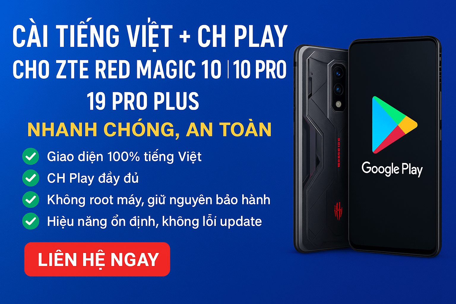 📞 Liên hệ ngay để cài Tiếng Việt + CH Play cho ZTE RED MAGIC 10, 10 Pro, 19 Pro Plus nhanh chóng, uy tín, giá tốt.
